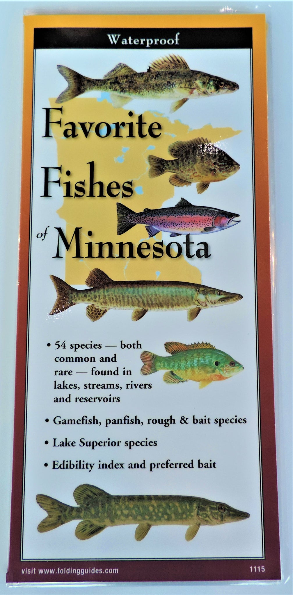 These laminated, fold-up identification guides Folding Guides speak for themselves. Written and illustrated by local experts who know their stuff, waterproof and indestructible, they're the perfect choice for beginners and intermediates who want to know what they'll encounter in their particular locale. This guide includes 58 freshwater species, both common and exotic, found in Minnesota's many lakes, streams, and reservoirs. Includes salmon, trout, bass, sunfish, crappie, catfish, gars, eels, even shiners, darters and other bait species. Typical size, both length and weight, as well as edibility index are included for each fish.